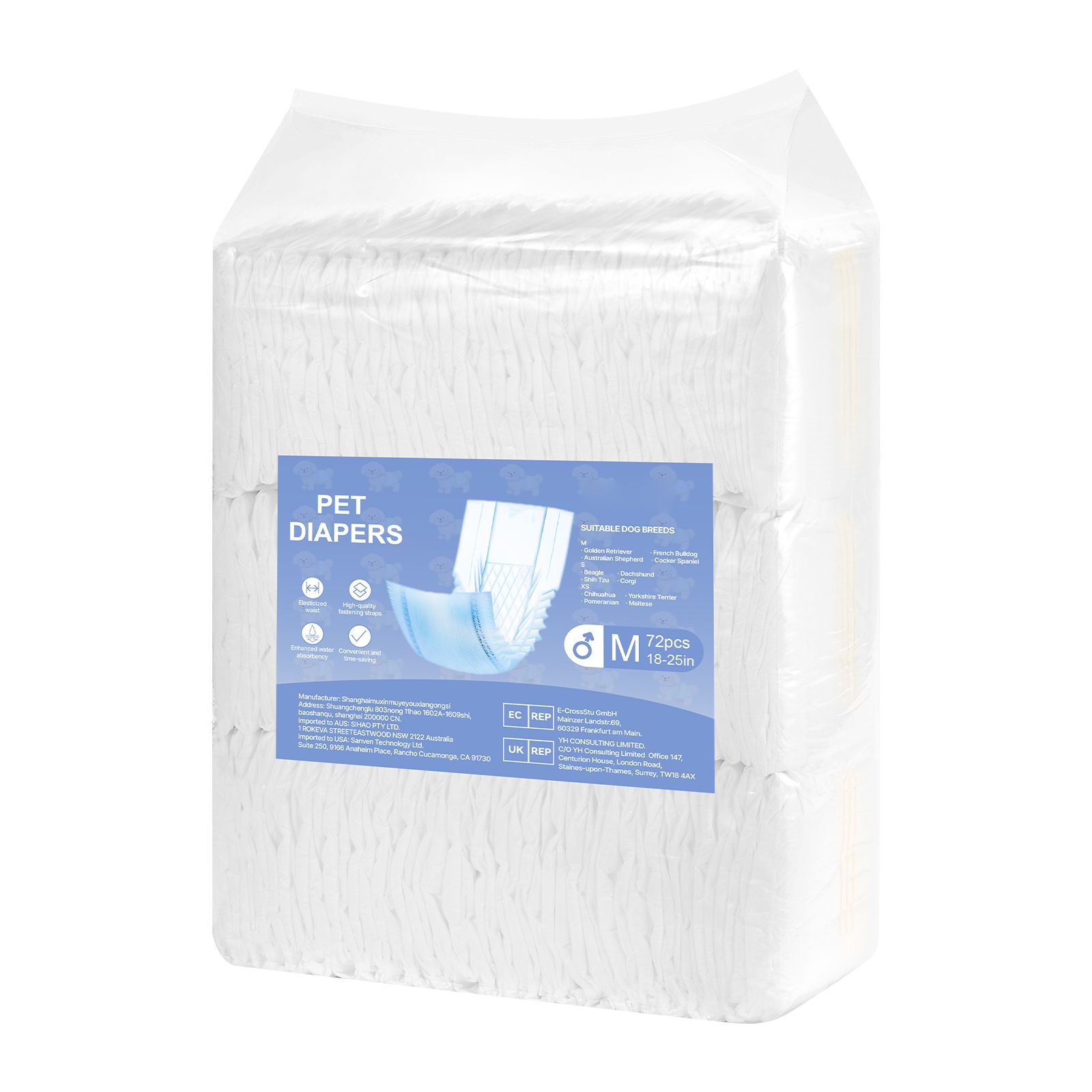 Perfect for various situations such as illness recovery, post-surgery care, senior incontinence, heat cycles, travel, and potty training. These super absorbent male dog diapers make daily pet care easier, easily solving your dog's potty problems and giving you peace of mind.