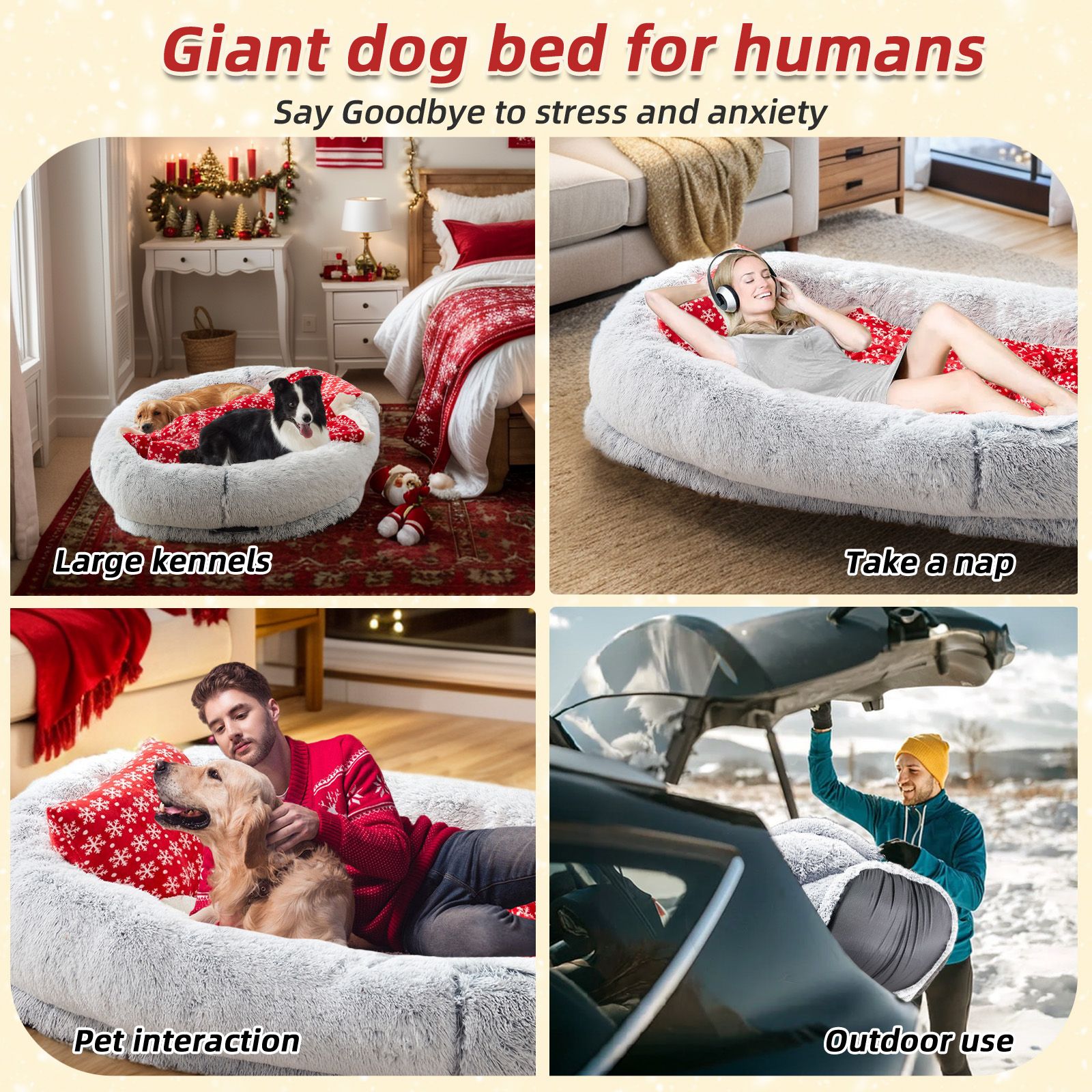 COMPLETE SET FOR RELAXATION - The human dog bed for kids comes with non-slip rubber bottom, which is not easy to slide during use. Our packaging includes a Dog Human Bed, a Soft Blanket, a Plump Pillow and a Durable Strap, This giant dog bed for humans is perfect for lounging, reading, or cuddling with pets